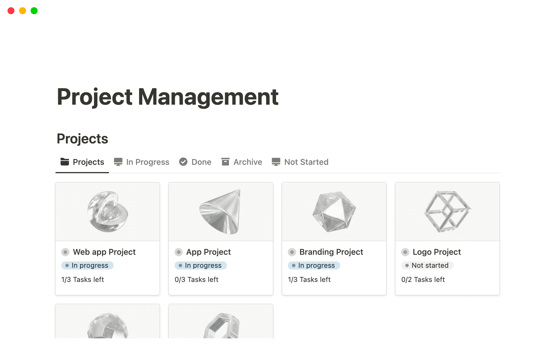 Notion helps us keep track of the 30+ projects we have going at once. We can click into any of them to get the full lay of the land right away.